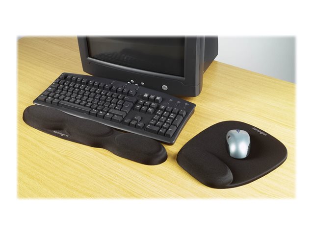 Reposamuñecas de espuma, apoyo y comodidad extras para la escritura o empleo del ratón, superficie de agarre firme; negro, integrado en alfombrilla de ratón, distribución de peso y presión uniformes en acolchado de espuma de gran resistencia, máximo efecto en períodos de tiempo prolongados.