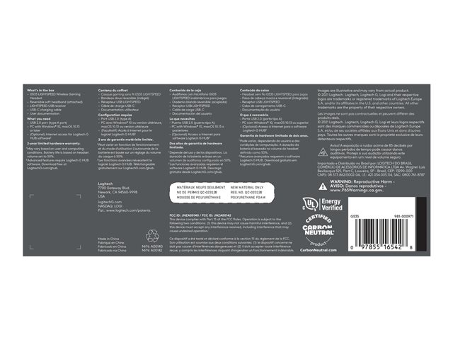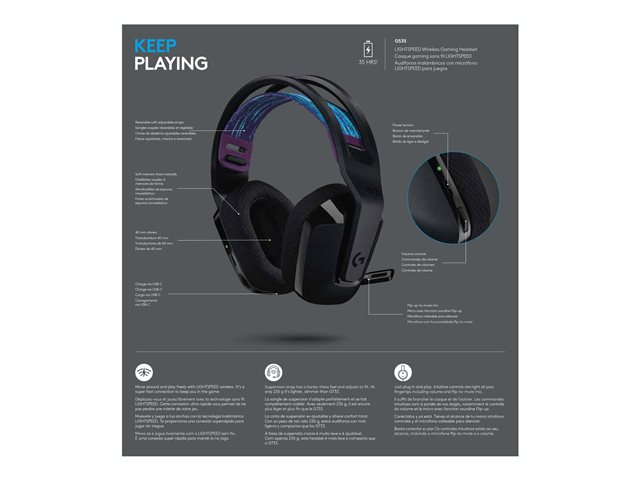 Logitech Audifono G535 Wireless GAMING Lightspeed 33 horas